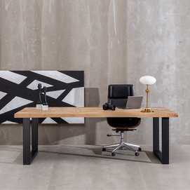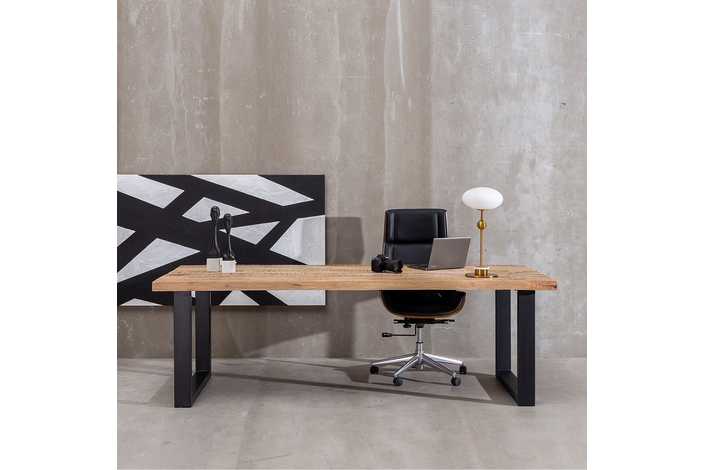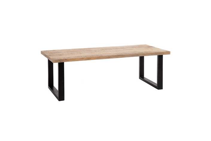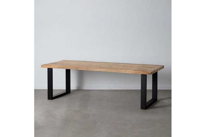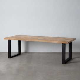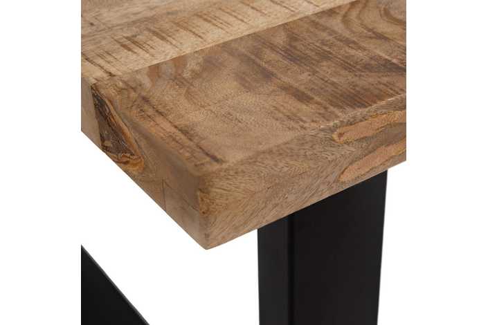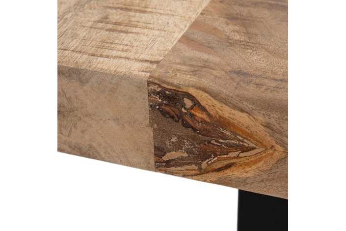 Material: madera de mango. Patas de hierro de 5x10cm. La superficie del sobre puede no ser totalmente lisa debido a su fabricación manual con listones de madera maciza. Grueso tablero: 6cm.