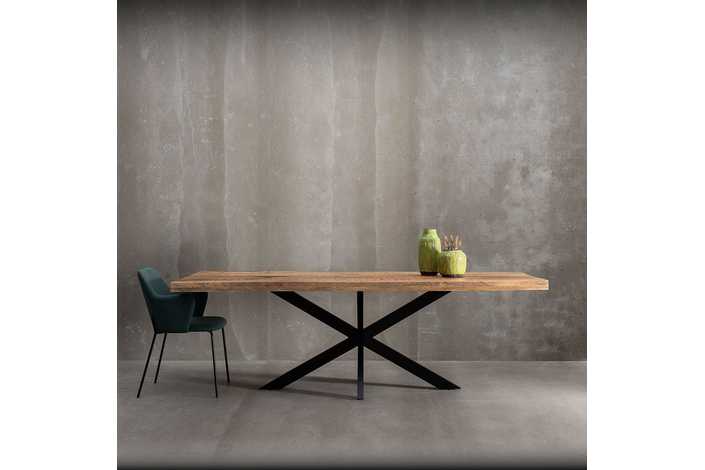 MESA COMEDOR NATURAL-NEGRO MADERA-HIERRO 240 X 100 X 79 CM