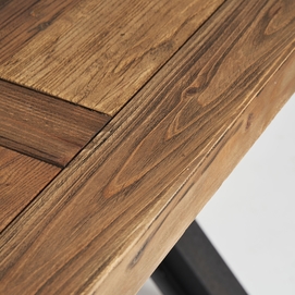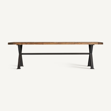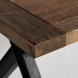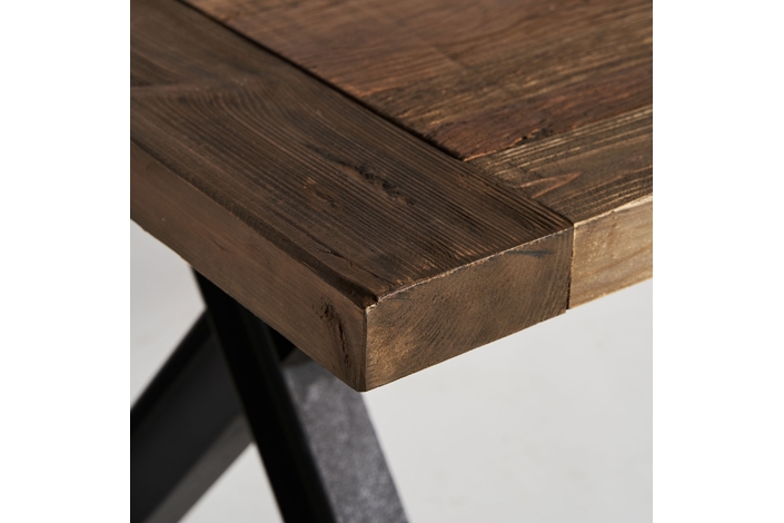 Mesa comedor pinsk, en color natural, de estilo industrial. Fabricado en madera de pino reciclado, combinado con hierro.