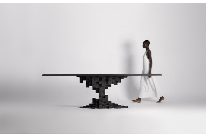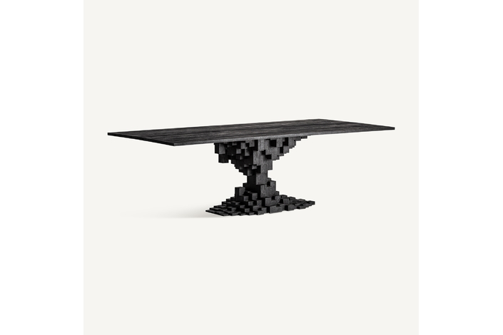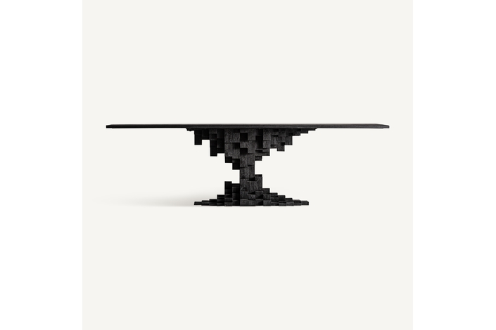 La Mesa Comedor PÈTRIA de VICALDESIGN se erige como un pilar de basalto: robusta y solemne, con una superficie amplia sostenida por una única columna central que evoca la fuerza de la tierra volcánica. Su diseño monumental, de líneas puras y geometría imponente, transforma el comedor en un espacio de contemplación y carácter atemporal.