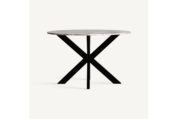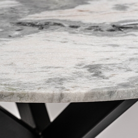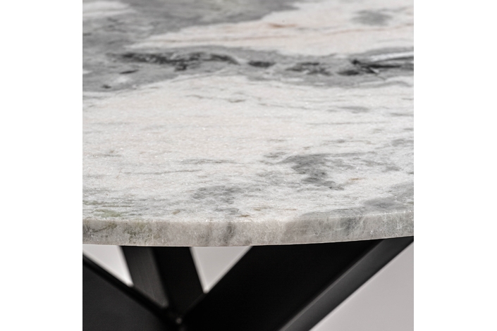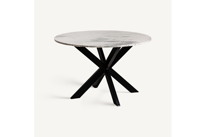 Mesa comedor sanza, en color blanco, de estilo art deco. Fabricado en mármol, combinado con hierro.