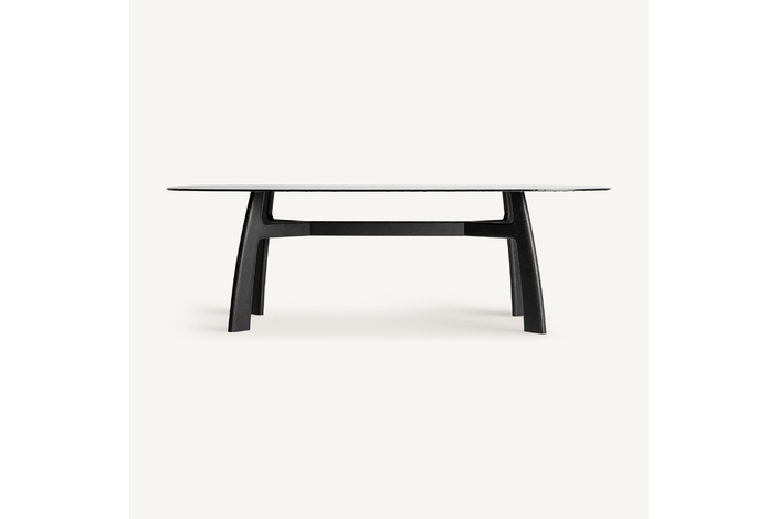Mesa comedor suchdol, de estilo contemporáneo. Fabricado en madera de fresno, en color negro, combinado con cristal templado, en color negro. Producto desmontable.