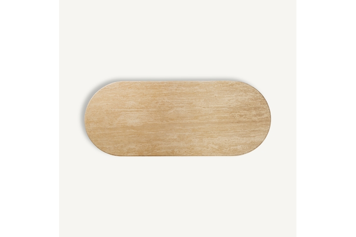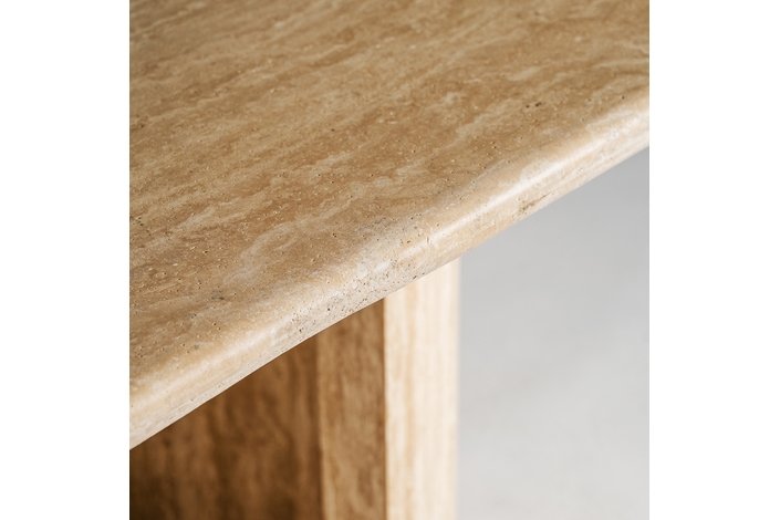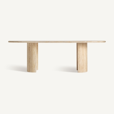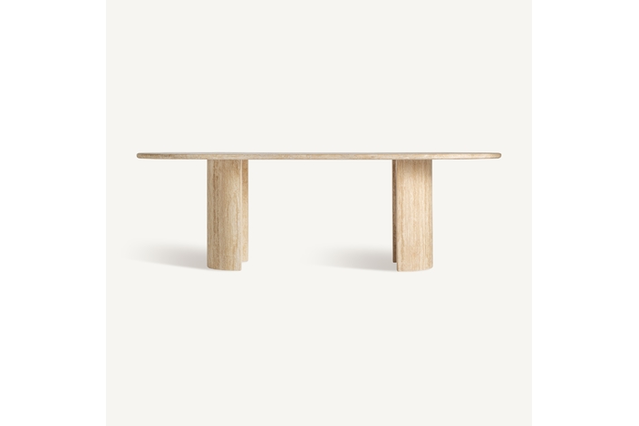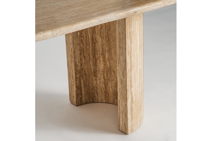 Mesa comedor thiennes, en color marrón claro, de estilo art deco. Fabricado en travertino. Producto desmontable.