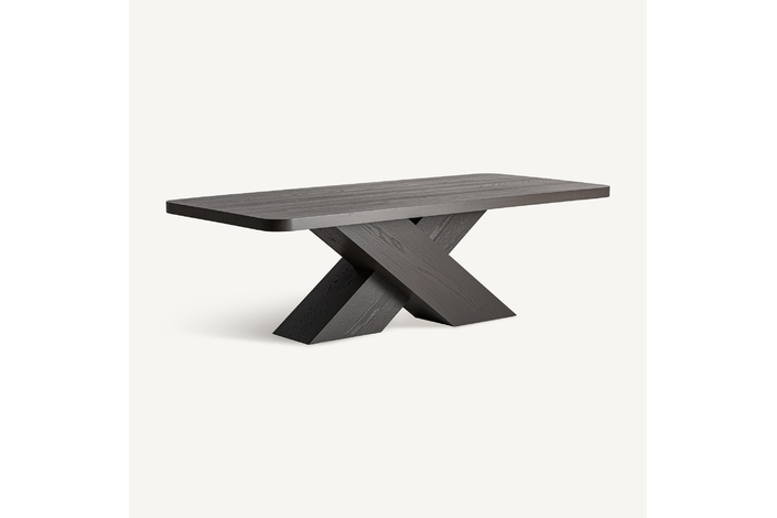 La mesa Yvore de VICAL ofrece una lectura contemporánea de la madera de roble. Su estructura cruzada en color negro aporta fuerza arquitectónica y modernidad, mientras que el tablero genera una superficie limpia y elegante. Una pieza sólida y versátil que eleva cualquier comedor con presencia y sofisticación.