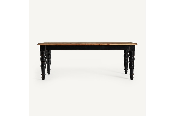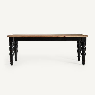 La Mesa de Comedor Zenica de VICAL Home, de 200x100x75cm, ofrece un contraste estético en madera de olmo, colores negro y natural. Su diseño contempla la armonía entre lo clásico y lo contemporáneo, convirtiendo tu comedor en un espacio de admiración constante.