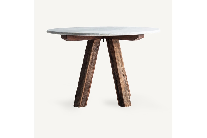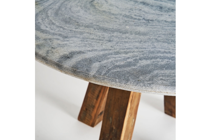 Las piezas rústicas poseen un carácter y personalidad que no se puede comparar con ningún otro acabado. Esta mesa de comedor con las patas de madera y la tapa de mármol cuenta una historia a través de sus imperfecciones. Cada una de las líneas que muestran sus patas y el acabado irregular de la madera afirman la belleza de estas imperfecciones.