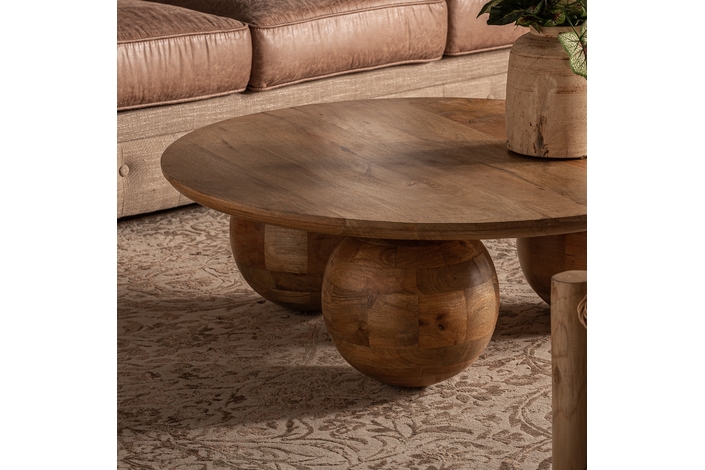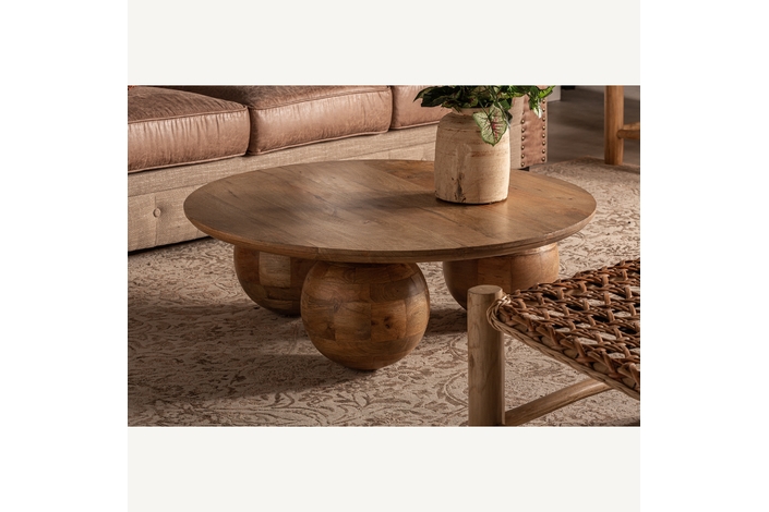 La Mesa de Centro Laugna de VICAL home es más que un mueble; es una declaración de estilo. Esta mesa de 96x96x33cm, fabricada en madera de mango natural, presenta un diseño innovador con bolas de madera que invitan a la conversación. Única, artística y sorprendentemente práctica, es el complemento perfecto para cualquier salón moderno.