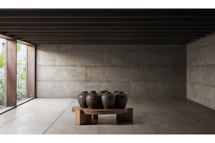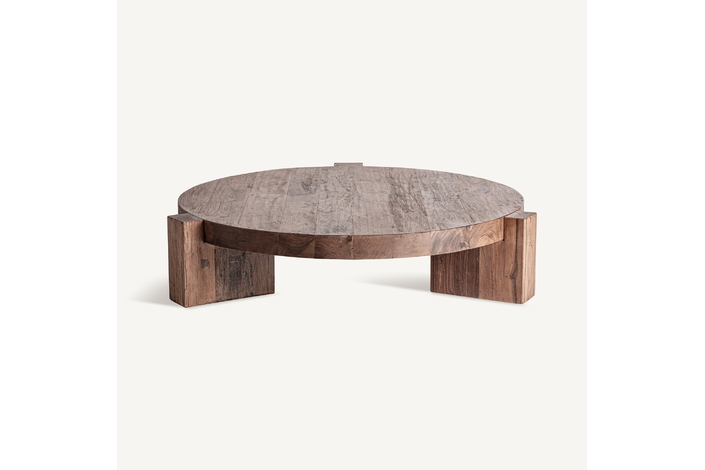 La Mesa de Centro BRUTALIST de VICALDESIGN se presenta como una escultura compacta, con patas gruesas que sostienen un disco macizo de madera. Rotunda y simbólica, evoca objetos rituales ancestrales, aportando calma y fuerza atemporal al ambiente.