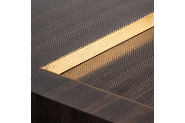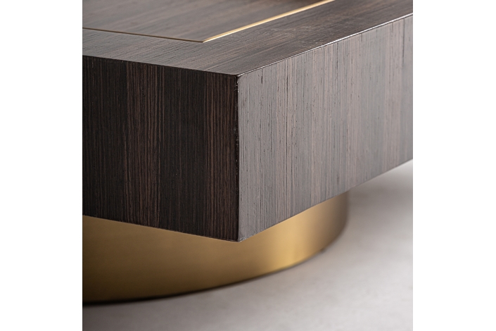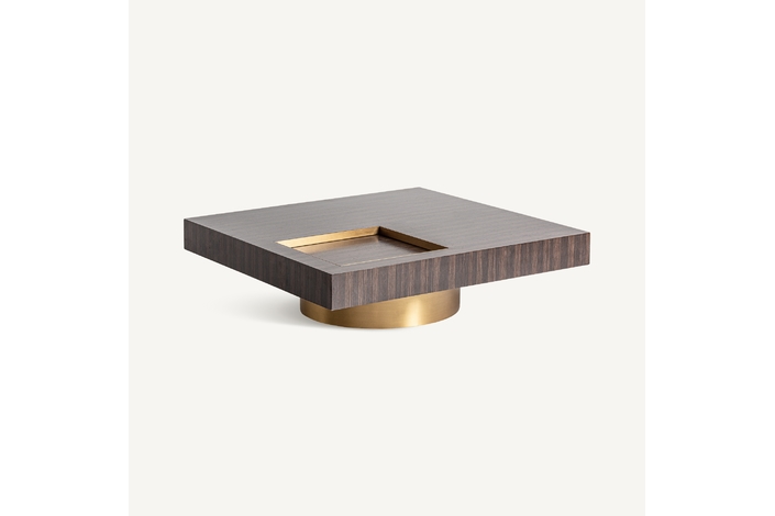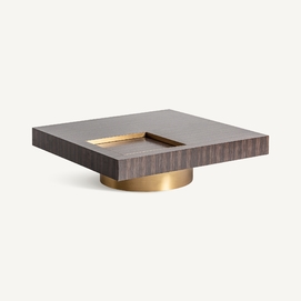 Mesa de centro cheb, en color oro/negro, de estilo art deco. Fabricado en madera de pino, combinado con acero y madera contrachapada. Producto desmontable.