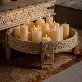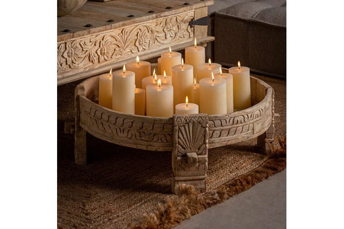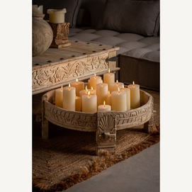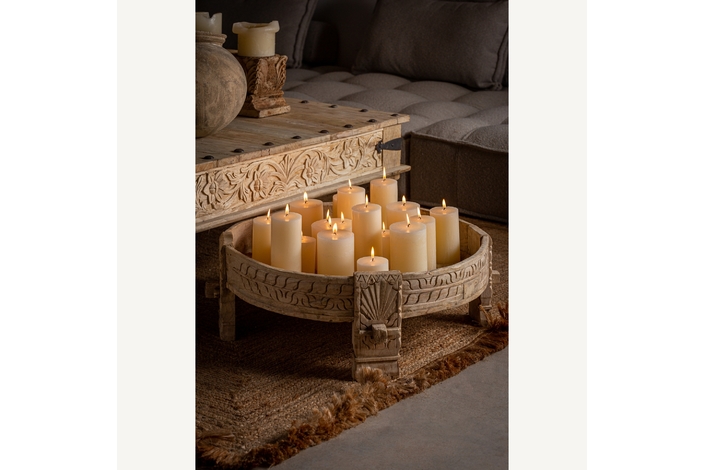 Inspirada en las antiguas mesas molinillo de la India, la Mesa de Centro Chiayi combina tradición con diseño contemporáneo. Su madera de teka envejecida y dimensiones de 72x72x28cm hacen de esta mesa un punto focal en cualquier salón. La mesa molinillo de India es una pieza artesanal con una historia única detrás.