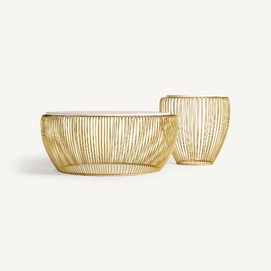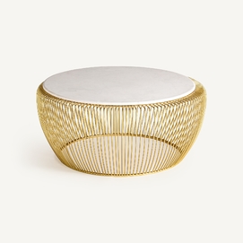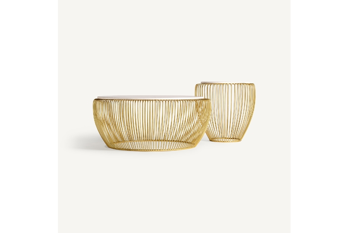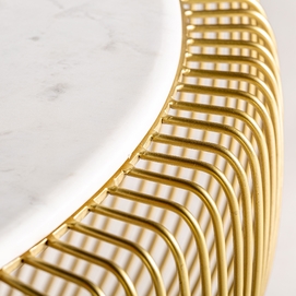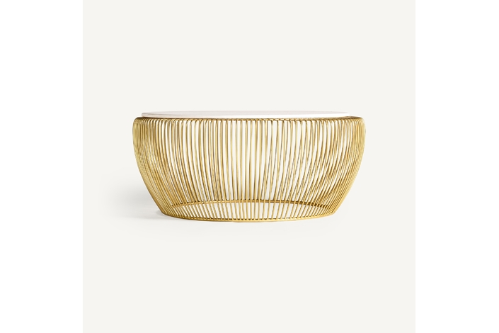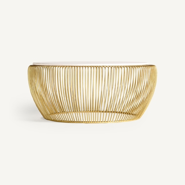 Mesa de centro digny, de estilo art deco. Fabricado en hierro, en color blanco, combinado con mármol, en color oro. Producto desmontable.