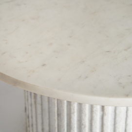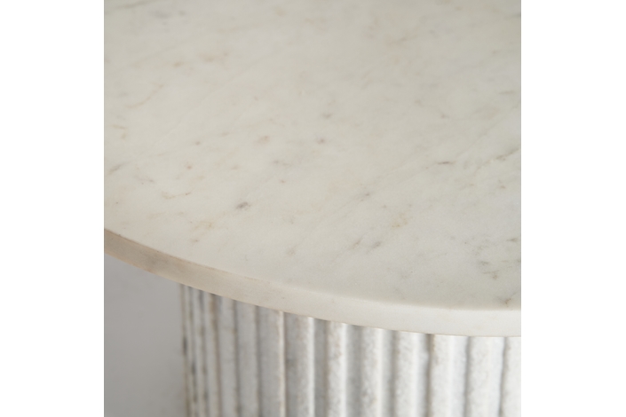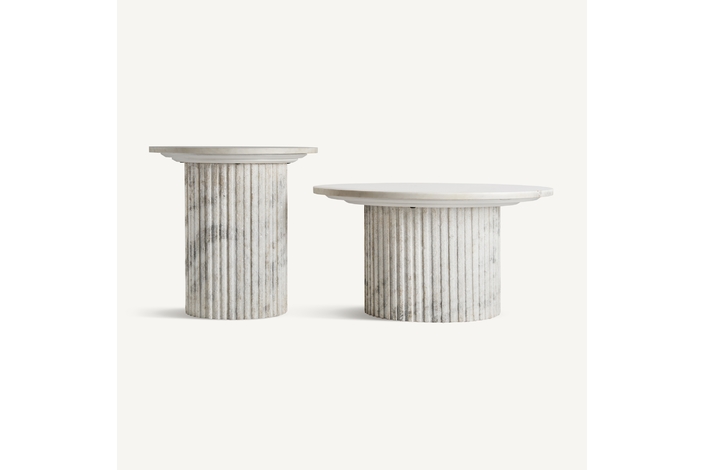 La Mesa de Centro Esches de VICAL redefine la elegancia moderna. Confeccionada en mármol blanco, sus medidas de 80x80x40cm la hacen adecuada tanto para espacios amplios como íntimos. Su superficie lisa y redonda de la mesa de centro de mármol blanco es perfecta para destacar elementos decorativos, mientras que su robusta construcción promete durabilidad y tiempolessness.