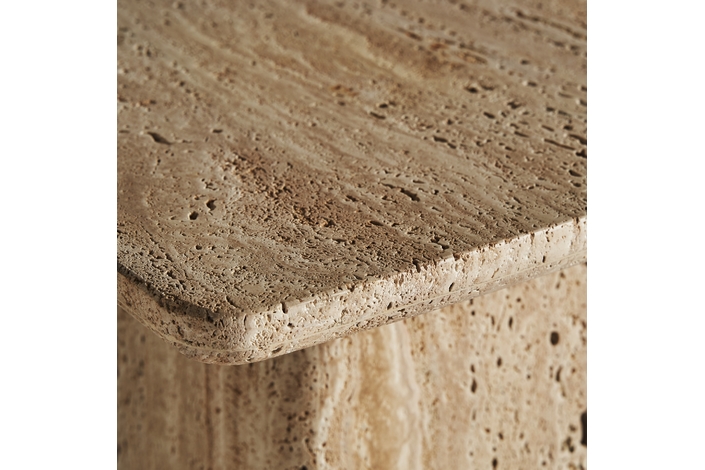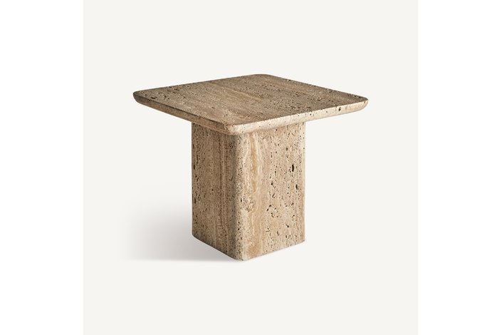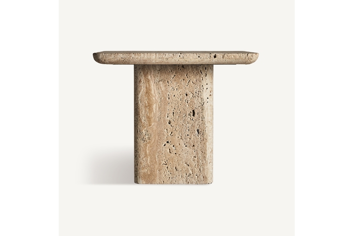 Mesa de centro fimland, en color beige, de estilo art deco. Fabricado en travertino. Producto desmontable.