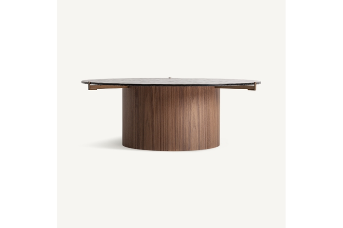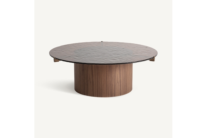 Mesa de centro giswil, en color marrón, de estilo art deco. Fabricado en madera contrachapada, combinado con cristal. Producto desmontable.