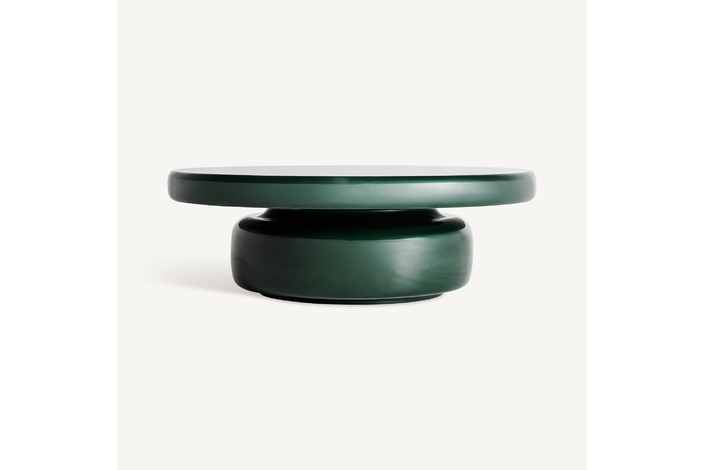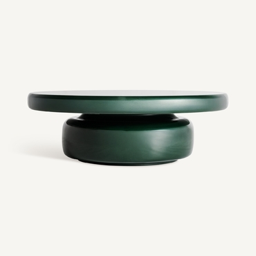 Mesa de centro gory, de estilo contemporáneo. Fabricado en madera dm, en color verde brillo, combinado con fibra de vidrio, en color verde. Producto desmontable.