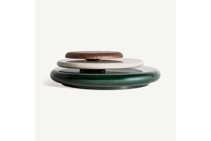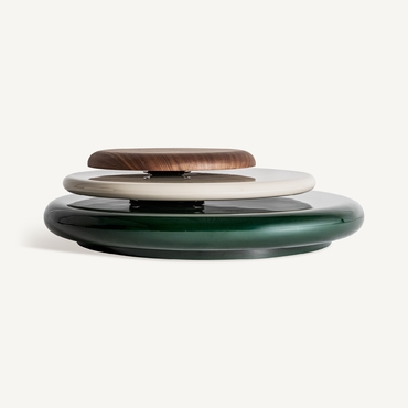 Mesa de centro hrob, de estilo contemporáneo. Fabricado en madera dm, en color marrón, combinado con madera contrachapada, en color blanco, en color verde. Producto extensible.