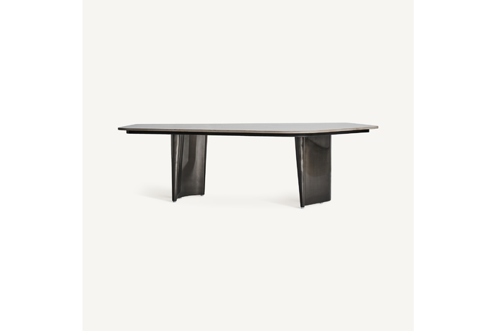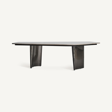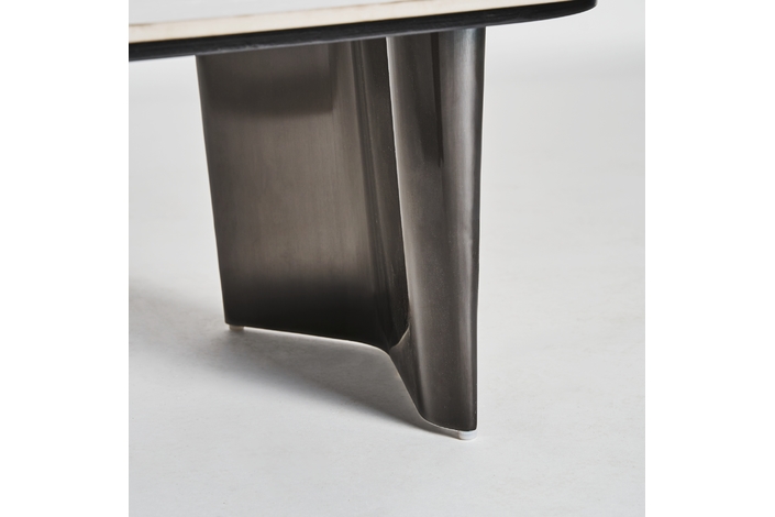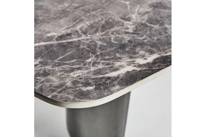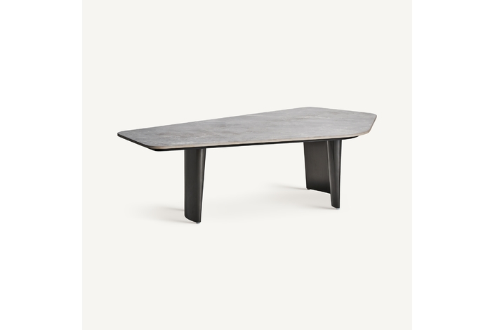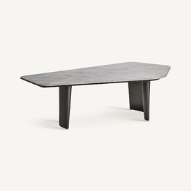 Mesa de centro kalvatn, en color negro/gris, de estilo art deco. Fabricado en acero, combinado con mármol sintético. Producto desmontable.