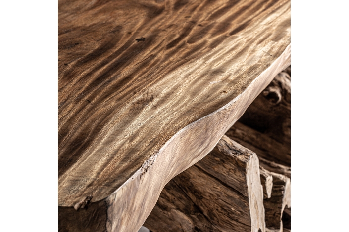 La Mesa de Centro Kanye de VICAL home redefine la elegancia con sus raíces de madera Suar. Con dimensiones de 200x172x52cm y acabado natural envejecido, esta mesa de centro raices de madera es el reflejo de la naturaleza en su máxima expresión. Las variaciones y marcas en la madera la convierten en una pieza única para tu salón.