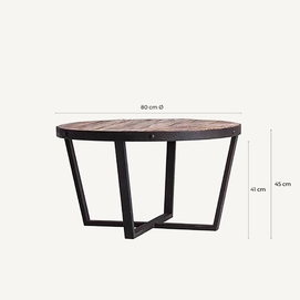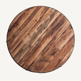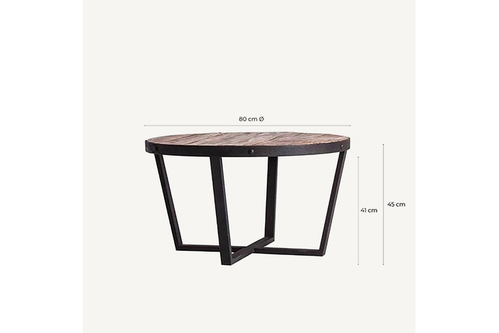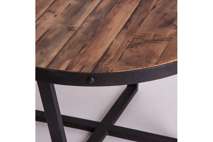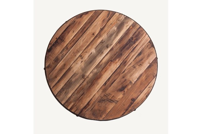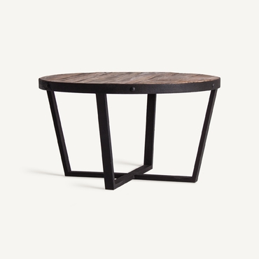 Mesa de centro redonda minot, en color marrón envejecido, de estilo industrial. Fabricado en madera de pino reciclado.