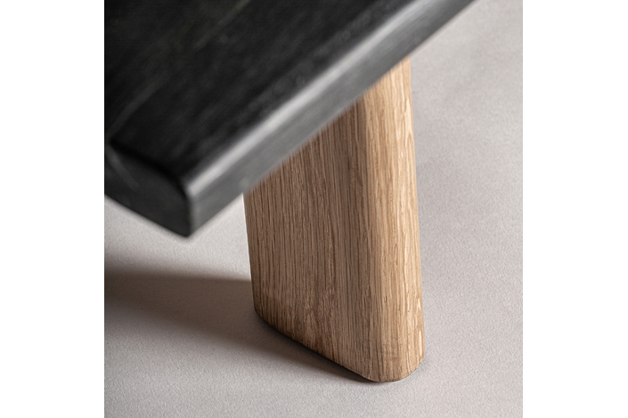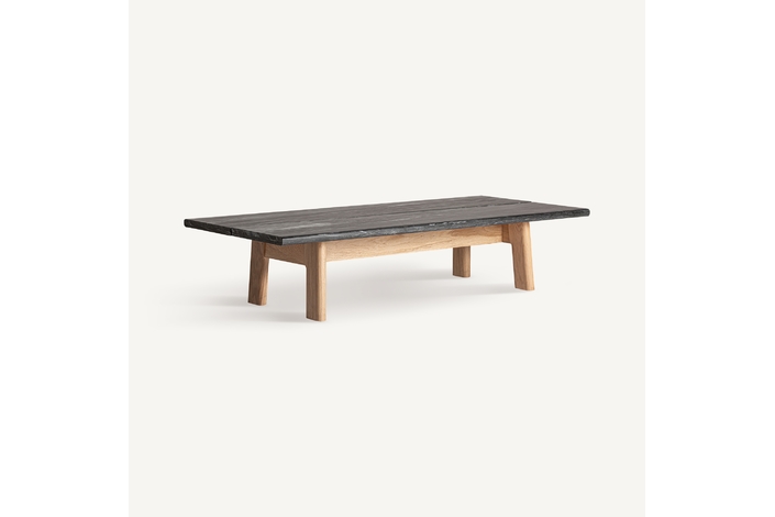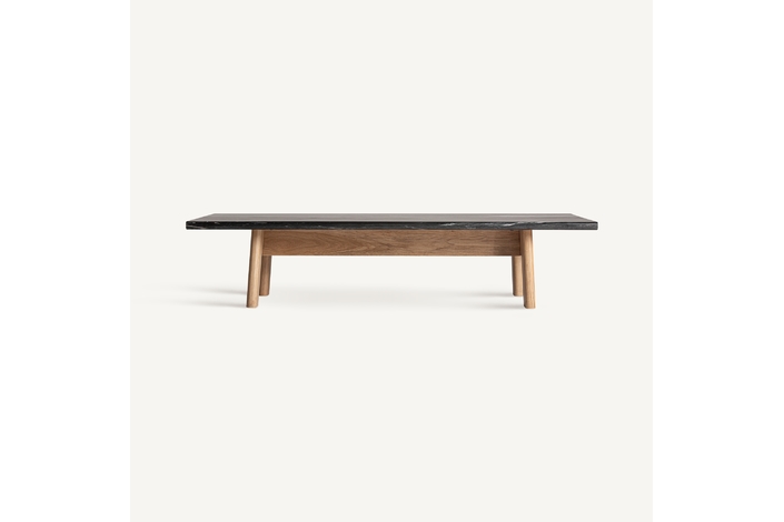 Nara, la colección diseñada por Francesc Rifé en colaboración con VICALDESIGN, es una oda a la materialidad y a la armonía de las formas. La mesa de centro Nara encarna esta filosofía, fusionando la robustez de la madera de roble con una estructura de planos paralelos que crean un juego rítmico y equilibrado. La pieza destaca por sus líneas simples y su diseño funcionalista, haciendo que encaje de forma elegante en cualquier espacio.