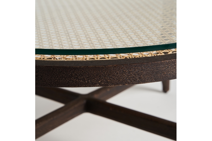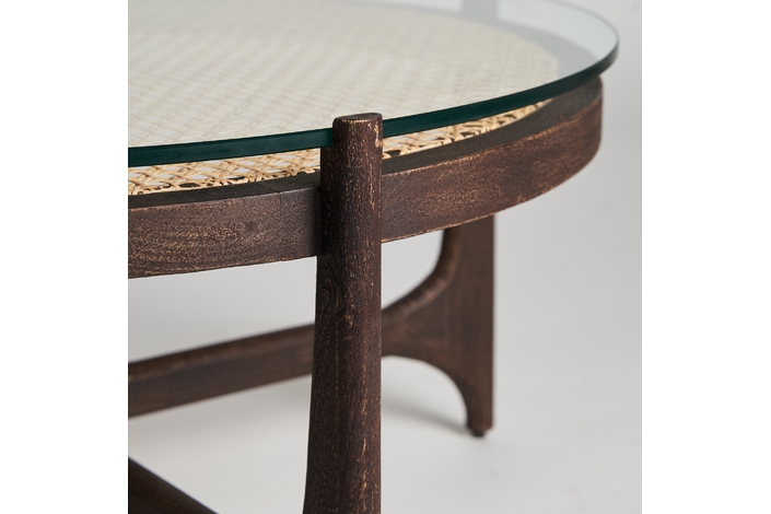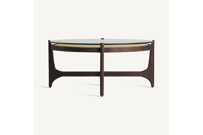 La Mesa de Centro Nossen de VICAL home es una mezcla encantadora de texturas y materiales. Con un tamaño de 92x92x41cm, esta mesa de centro presenta una estructura de madera de mango en marrón, un detalle de rattán y un tablero de cristal, combinando lo rústico con lo moderno. Es el punto focal perfecto para un salón inspirado en la naturaleza.