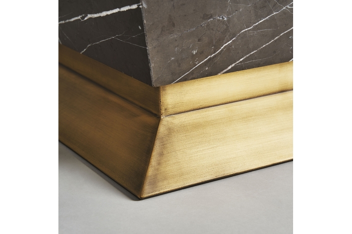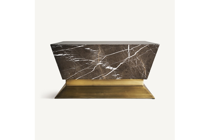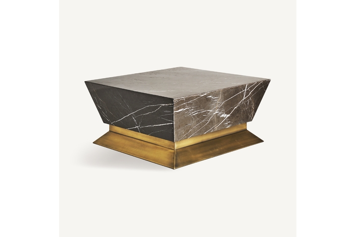 Mesa de centro rotz, en color negro/oro, de estilo art deco. Fabricado en mármol, combinado con hierro.