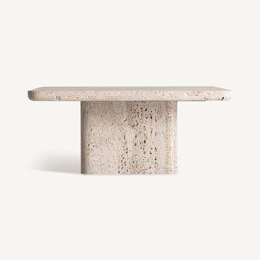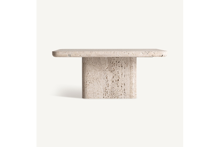 Mesa de centro theuville, en color beige, de estilo art deco. Fabricado en travertino.