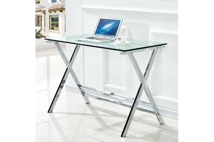 Mesa DELFOS (SU), cromada, cristal, 110 x 55 cms