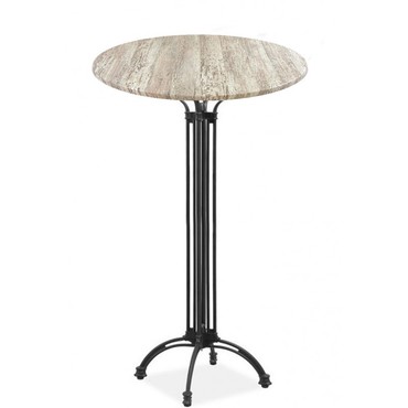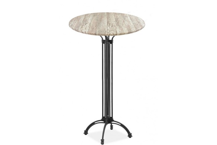 Mesa alta de fundición de aluminio de 4 puntas, revestida con pintura de resina negro mate y tapa de 60 cms de diámetro. Color a elegir. Uso interior y exterior.
