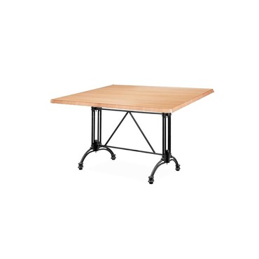 Mesa rectangular con base de fundición de aluminio, revestida con pintura de resina negro mate y tapa de 110 x 70 cms. Color a elegir. Uso interior y exterior.