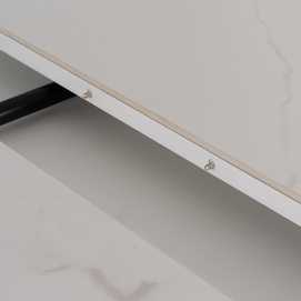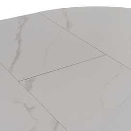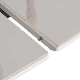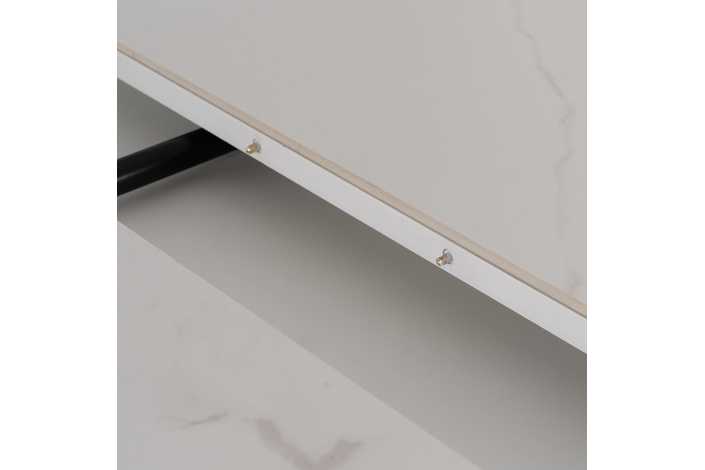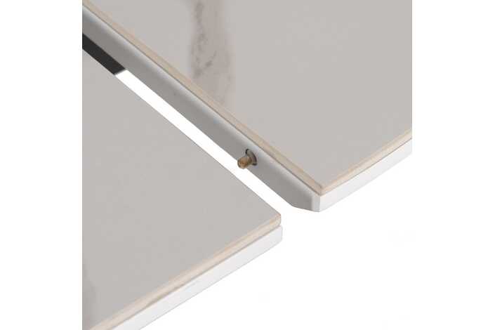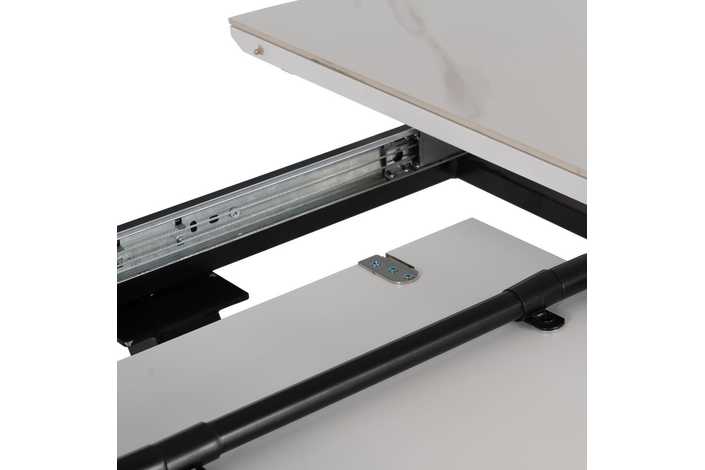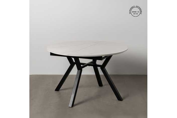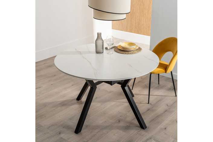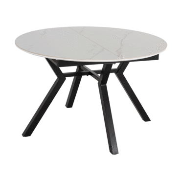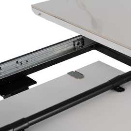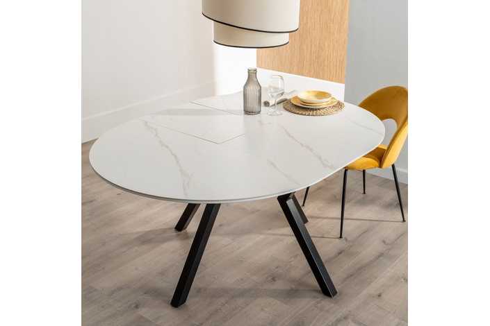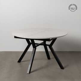 Material: patas de metal (hierro) - top cerámico imitación mármol - Dm. Mesa extensible, largo total 160cm, ancho: 120cm. Grueso tablero: 1.5cm. Para montar.