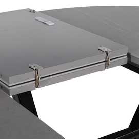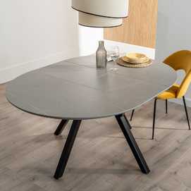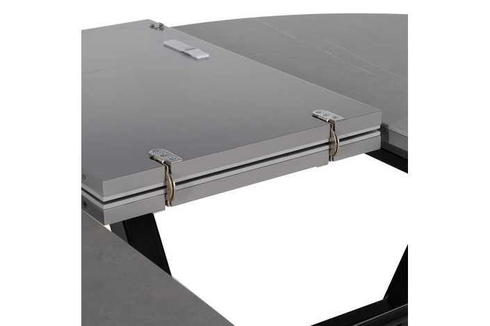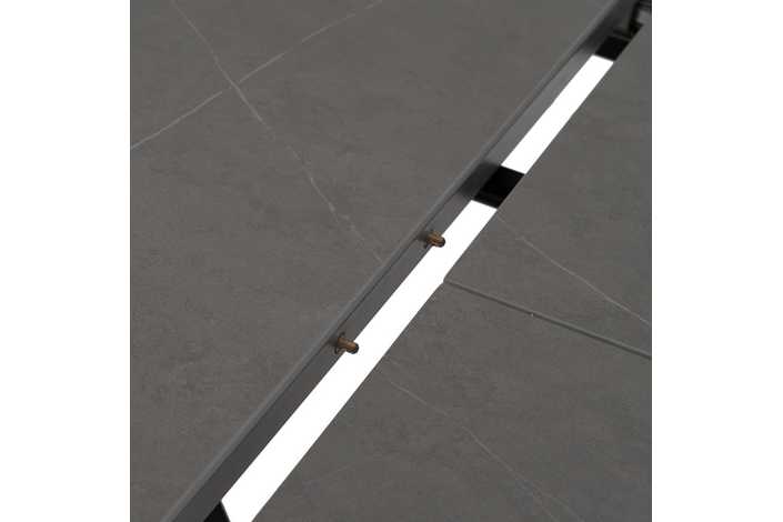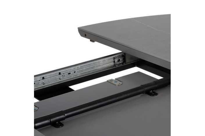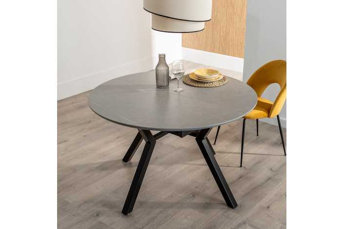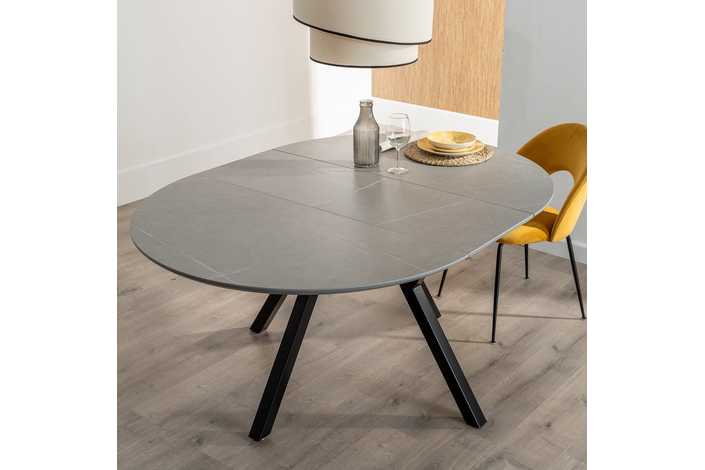 Material: patas de metal (hierro) - top cerámico imitación mármol - Dm. Mesa extensible, largo total 160cm.- ancho: 120cm. Grueso tablero: 1.5cm. Para montar.