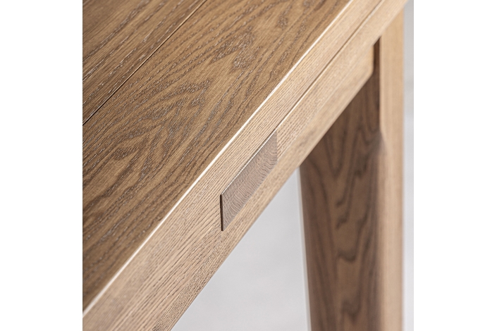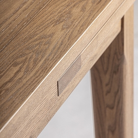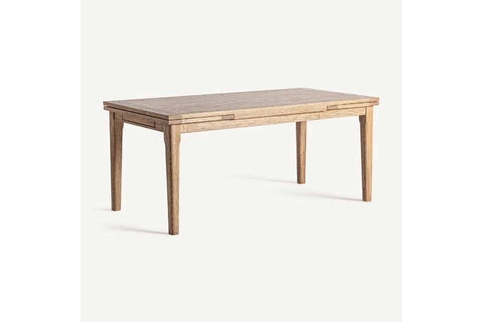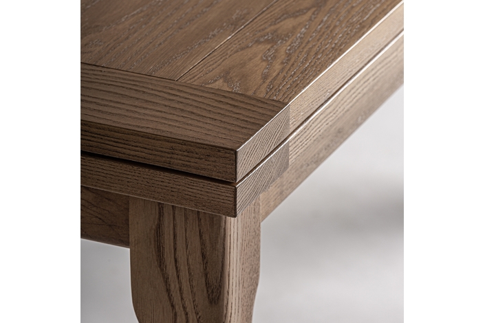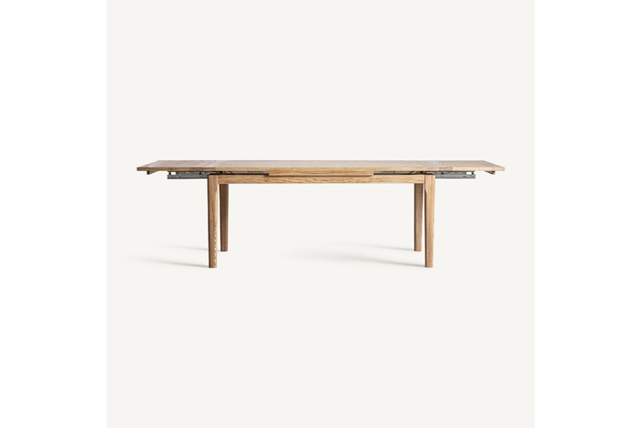 Mesa extensible heikant, de estilo clásico. Fabricado en madera de fresno, en color marrón claro, combinado con chapa de madera.