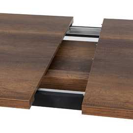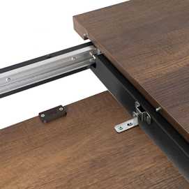 MESA EXTENSIBLE DE 170CM. A 230CM. (+60CM). PATAS PARA MONTAR AL SOBRE. ABERTURA CENTRAL EXTENSIBLE. GROSOR SOBRE: 3,8 CM. MEDIDA ENTRE PATAS: 132CM. MATERIAL SOBRE: AGLOMERADO DE MELAMINA. MATERIAL PATAS: HIERRO