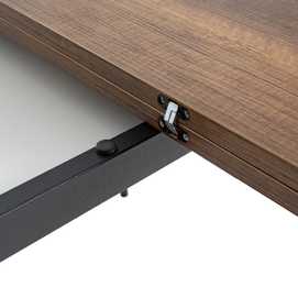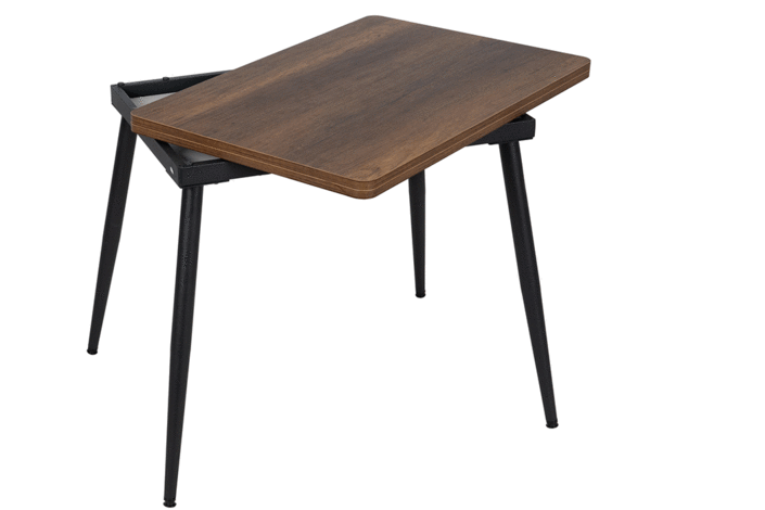 MESA EXTENSIBLE GIRATORIA 90X60CM. A 120X90CM. PATAS PARA MONTAR AL SOBRE. GROSOR SOBRE SIN ABRIR: 3,8CM. ABIERTO: 1,8CM. MEDIDA ENTRE PATAS: 70CM. MATERIAL SOBRE: AGLOMERADO DE MELAMINA. MATERIAL PATAS: HIERRO