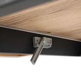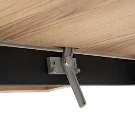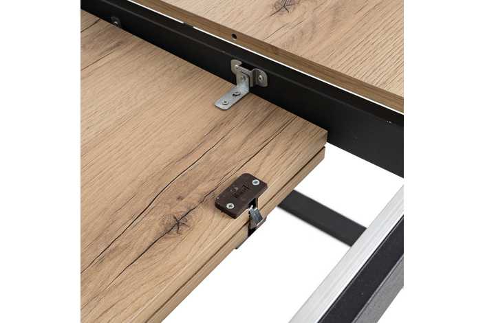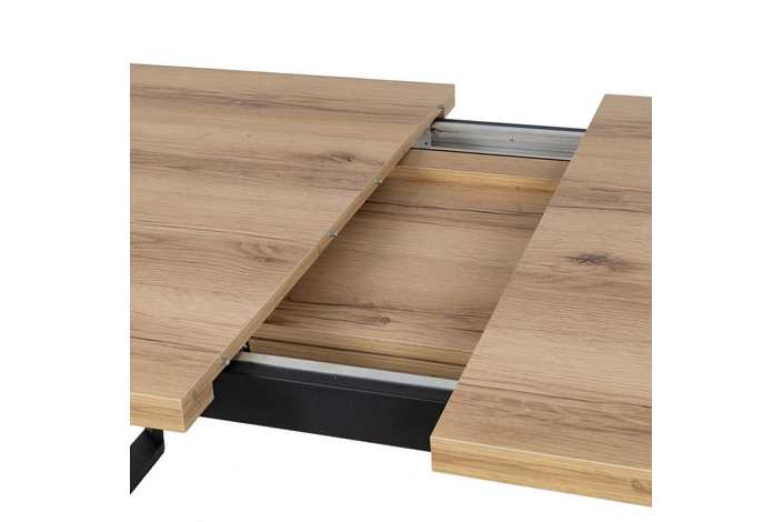 MESA EXTENSIBLE DE 170CM. A 230CM. (+60CM). PATAS PARA MONTAR AL SOBRE. ABERTURA CENTRAL EXTENSIBLE. GROSOR SOBRE:3,8 CM. MEDIDA ENTRE PATAS: 132CM. MATERIAL SOBRE: AGLOMERADO DE MELAMINA. MATERIAL PATAS: HIERRO