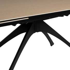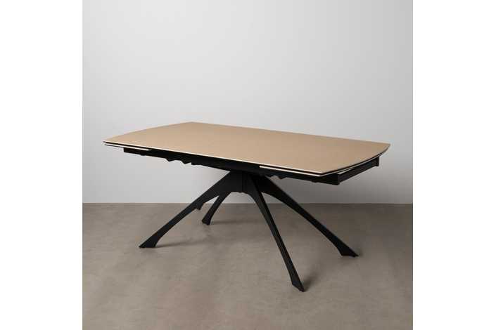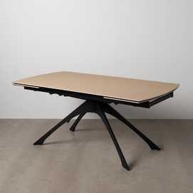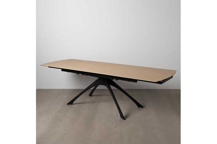 Material: cerámica 6mm - cristal 6mm - hierro. Mesa extensible, de 180cm a 260cm (+80cm). Precisa montaje. Distancia entre patas: 65 - 113cm.