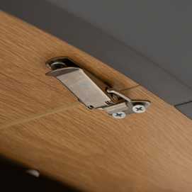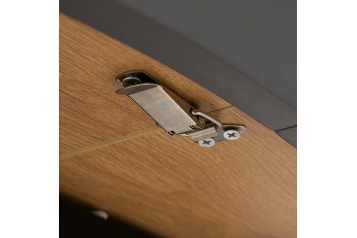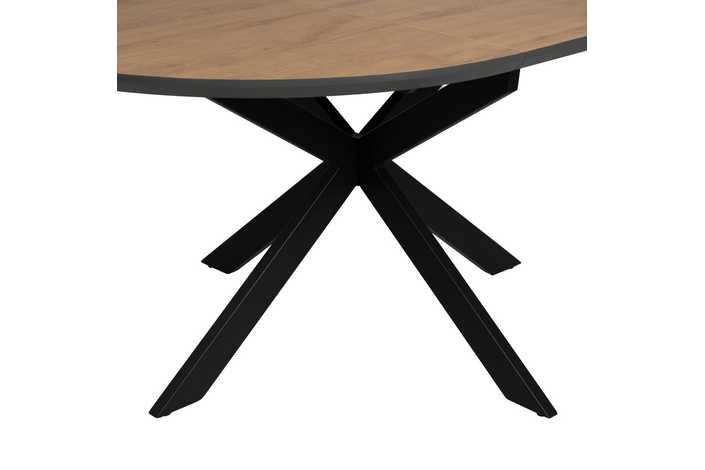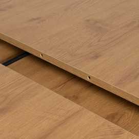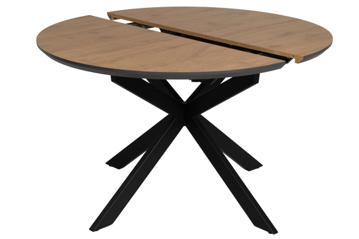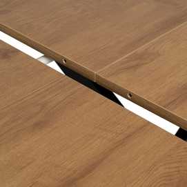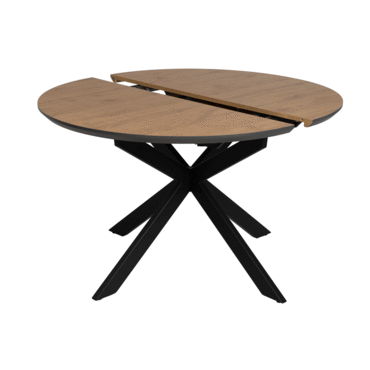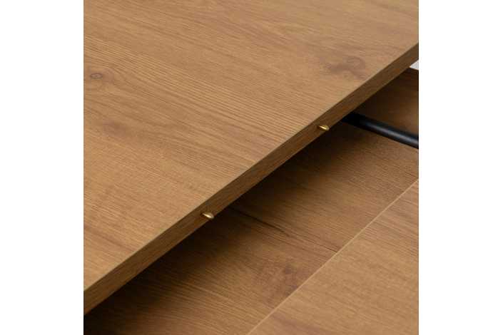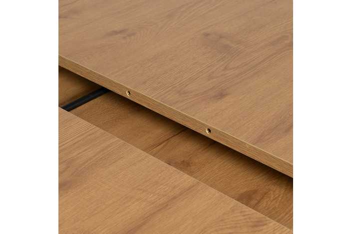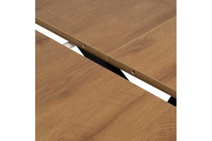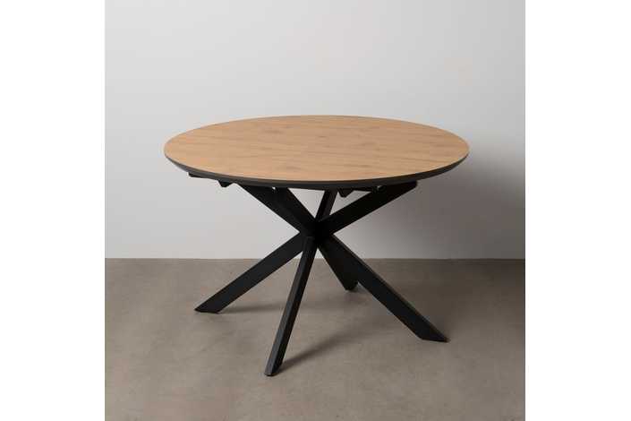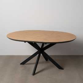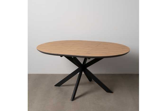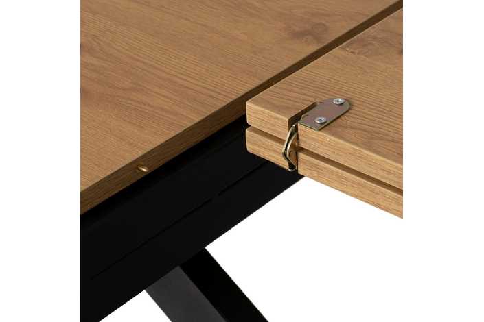 Material: DM, melanina 12mm roble - hierro. Mesa extensible, de 120cm a 160cm (+40cm). Precisa montaje.
