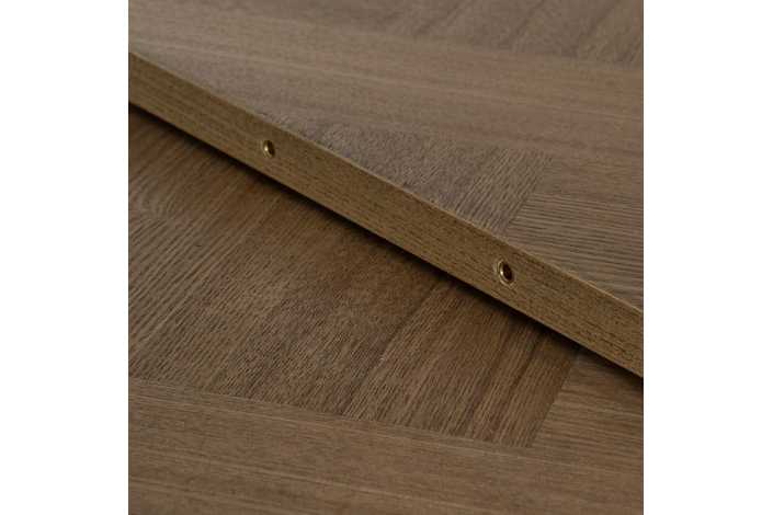 Material: metal (hierro) - Dm vinilo imitación madera Mesa extensible, largo total 200cm. Grueso tablero: 2cm. Para montar.
