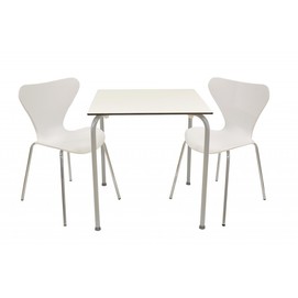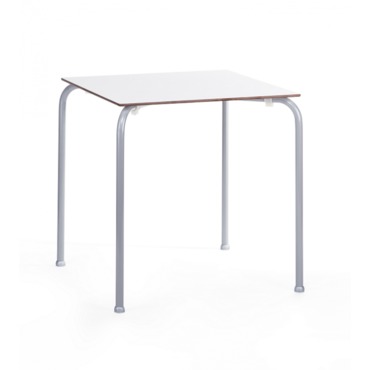 Mesa FERAY, apilable, epoxi plata, tablero fenólico blanco, 69 x 69 cms.