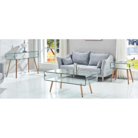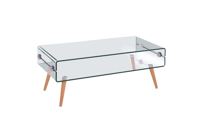 Mesa baja rectangular de diseño, madera, cristal curvado
