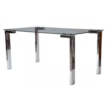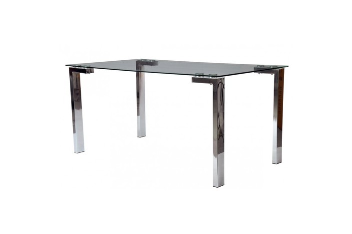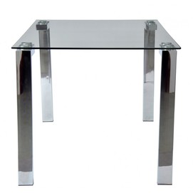 Mesa de diseño, multiusos, patas cromadas, cristal templado de 10 mm. de espesor con acabado transparente.