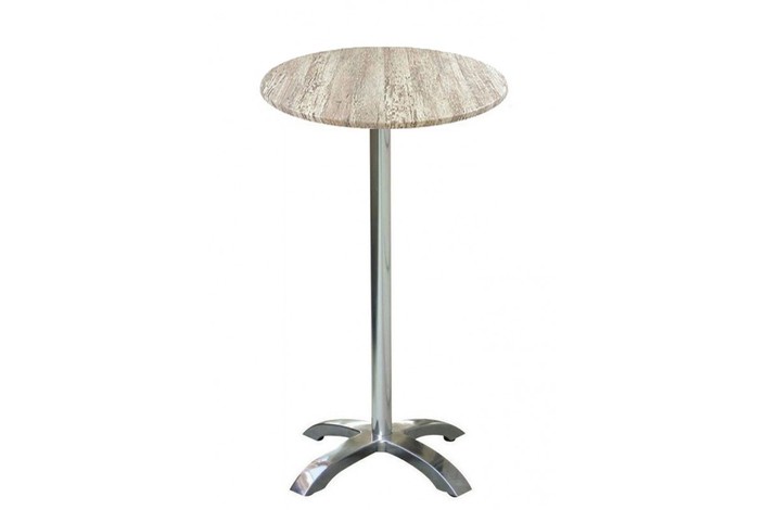Mesa alta de aluminio, pie central 4 radios, tapa de 60 cms de diámetro. Color a elegir. Uso en exteriores e interiores