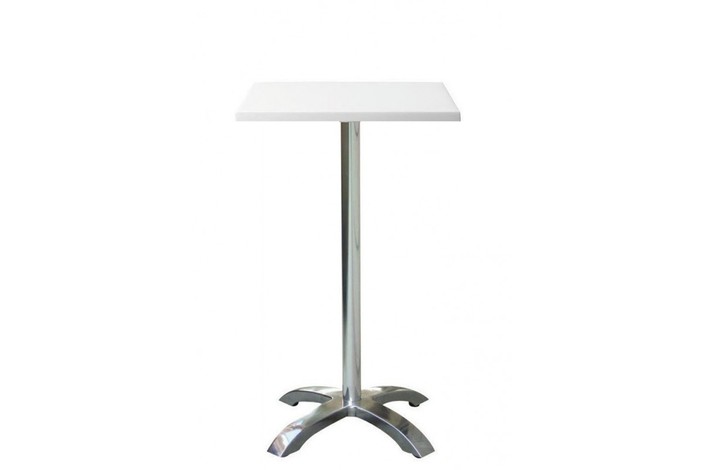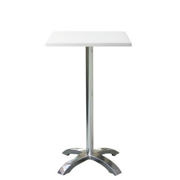 Mesa alta de aluminio, pie central 4 radios, tapa de 60 x 60 cms. Color a elegir. Uso en exteriores e interiores
