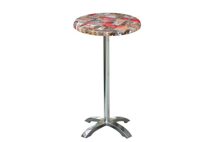 Mesa alta de aluminio, pie central 4 radios, tapa de 70 cms de diámetro. Color a elegir. Uso en exteriores e interiores