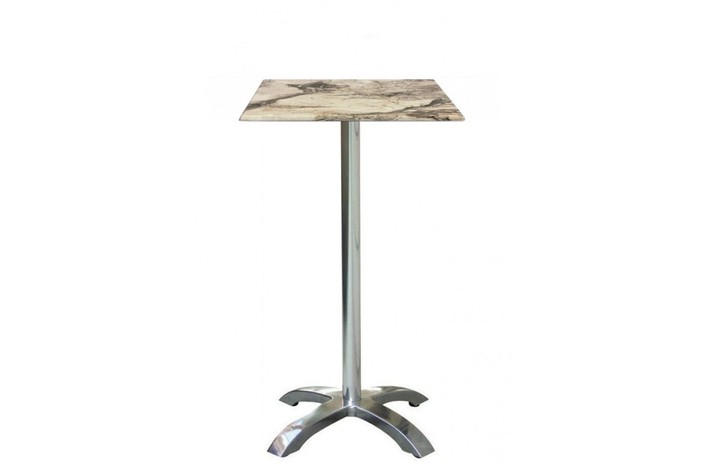 Mesa alta de aluminio, pie central 4 radios, tapa de 70 x 70 cms. Color a elegir. Uso en exteriores e interiores