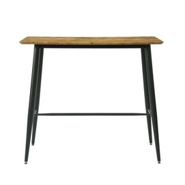 Mesa de diseño, alta, armazón de metal con acabado negro, tapa DM vintage. Taburetes a juego.