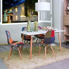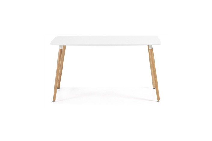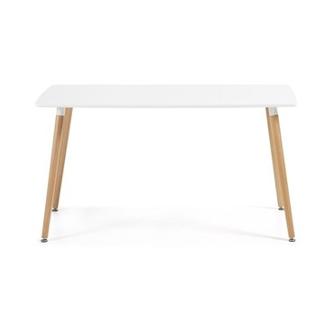 Mesa de diseño, patas de madera de haya maciza, tapa blanca. Sillas y sillones a juego. Otros colores disponibles