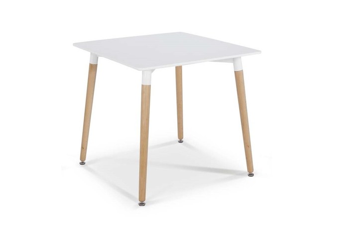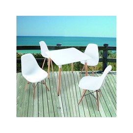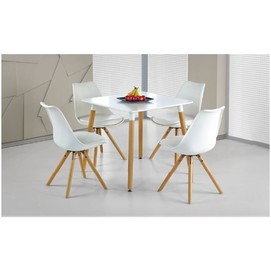 Mesa de diseño, patas de madera de haya maciza, tapa lacada en blanco. Otros colores disponibles. Sillas y sillones a juego