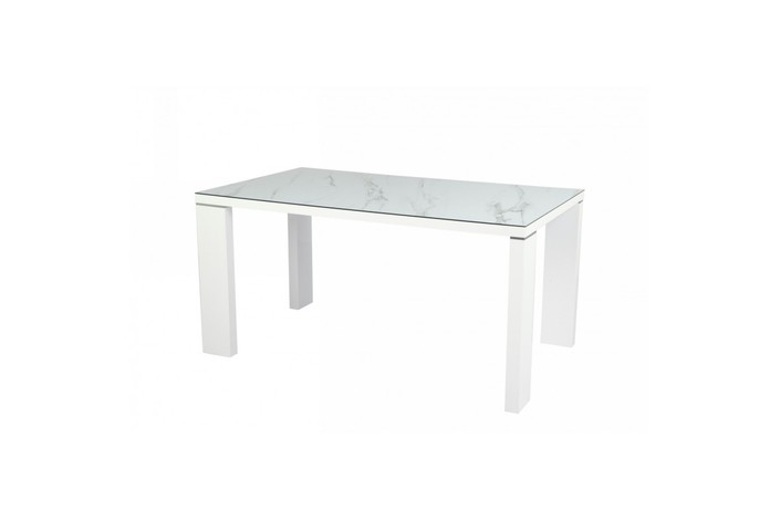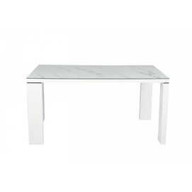 Mesa de comedor, armazón y tapa lacado en blanco, cristal templado con acabado cerámico.